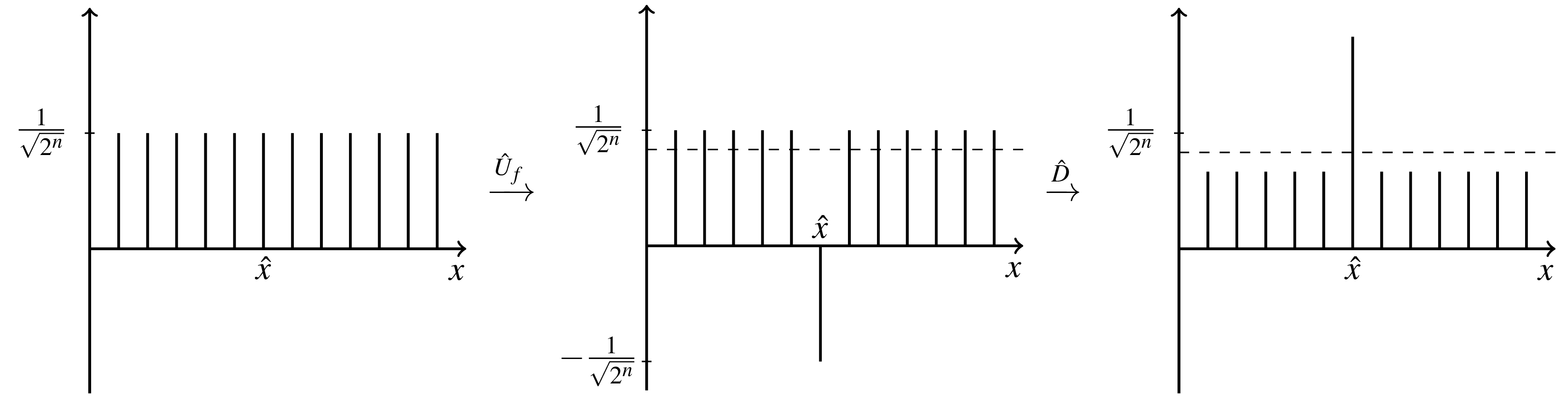 Figure 1: Demonstration of the effect of first applying the oracle and afterwards applying the diffusion operator.