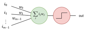 Figure 1: A neuron taking m input arguments and delivering output based on a threshold activation