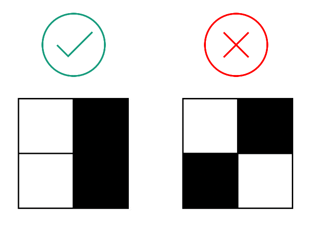 Figure 2: Visualisation of two binary images, whereof the left one represents the searched pattern